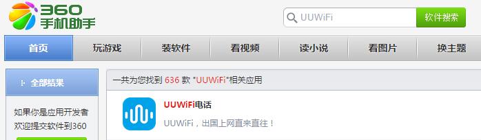 1, in the application of treasure, Baidu mobile assistant, Android Market, 360 mobile assistant, pea pods, Meizu application store, 91 mobile assistant and other application market search UUWiFi download and install;